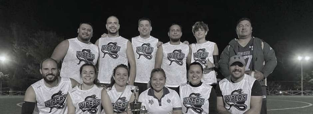 Vipers nació como un equipo mixto de Flag Football en el torneo de apertura anual de la liga, logrando el campeonato en nuestro primer año. Ese triunfo marcó el inicio de una historia que hoy seguimos escribiendo con esfuerzo, pasión y disciplina.